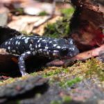 Okay, a lot of information, let’s get back to the thrill of finding them. There are many more salamanders in New York and Pennsylvania than just this one. Their array of patterns is fascinating and mesmerizing. Yellow spots, white dots, blue speckles; ebony black racing stripes on a gold body, chevron patterns, and colors ranging from brown to pink to yellow. The smallest is about two inches, the largest pushes 24 inches. A two-foot salamander! Right here in the Allegheny Plateau! Habitats are just as varied, from wooded hillsides to trickling streams, boggy ponds to rocky-bottomed rivers.