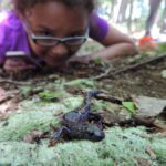 - A child holds a spotted salamander egg at Mud Camp at ACNC.