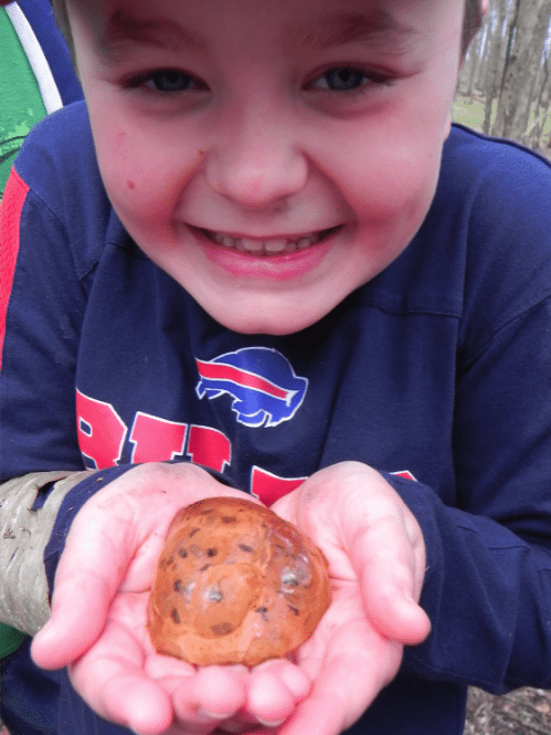 A child holds a spotted salamander egg at Mud Camp at ACNC.