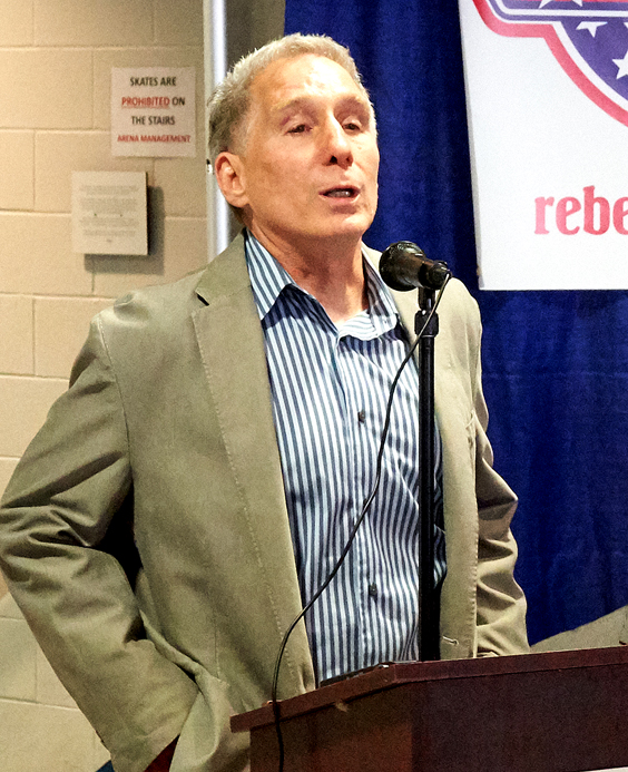 - Jamestown Rebels owner Ken Dennis speaks at Tuesday’s news conference. P-J photo by Chad Ecklof