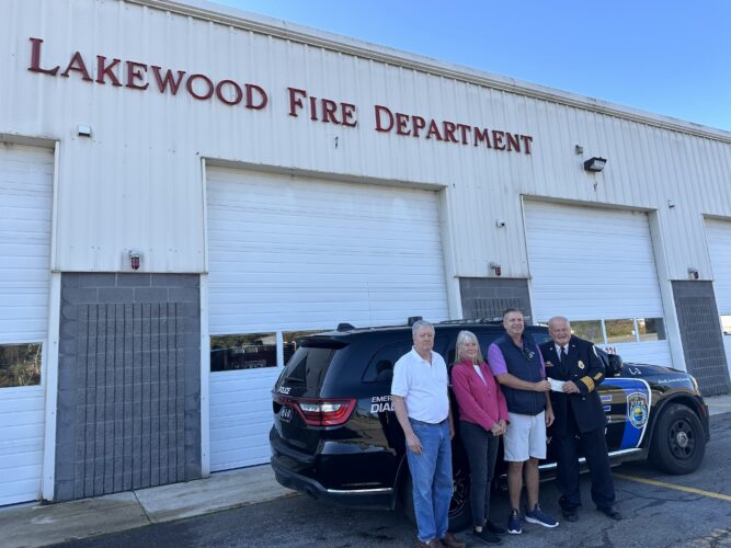 LAKEWOOD - The Lakewood Community Development Corporation recently presented a $1,000 check to the Lakewood Volunteer Fire Department in appreciation of its support during the inaugural Rock the Lake Summer Concert Series at Hartley Park.