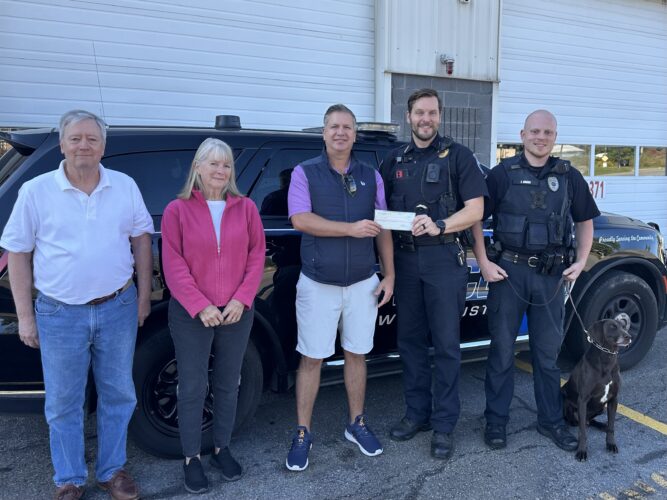 LAKEWOOD - The Lakewood Community Development Corporation recently presented a $1,000 check to the Lakewood-Busti Police Department’s Canine Unit in recognition of its support and service during the inaugural Rock the Lake Summer Concert Series recently held at Hartley Park.