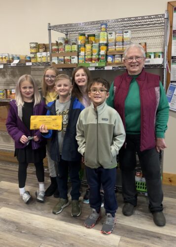 The Frewsburg Little Hoopers hosted a community fundraiser to benefit the local food pantry, with basketball players in first through sixth grades raising $2,044. Pictured from left to right are Cora Casel, Audrey Casel, Henry Bussman, Meadow Weinstein, Beck Miller, and Wendy Nelson from the ...