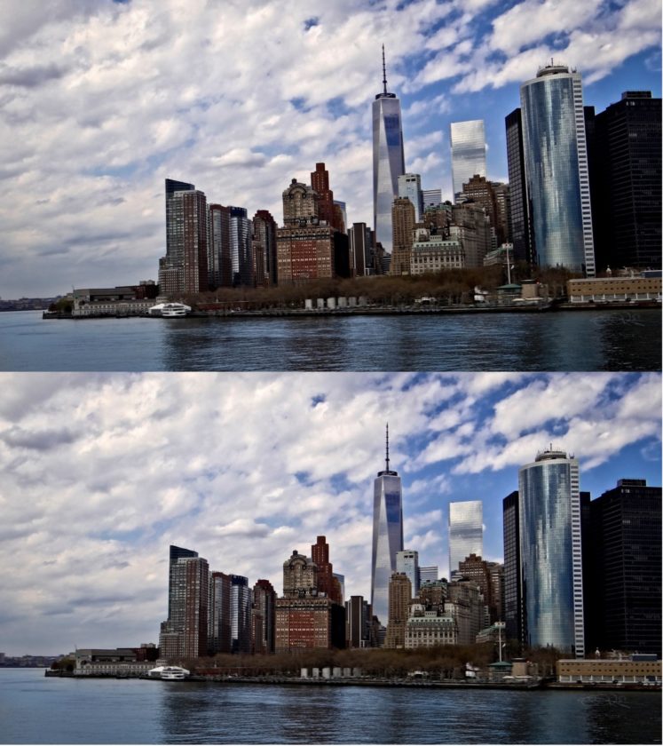 In the photos of the New York City skyline, I was shooting from the Staten Island Ferry and I was bobbing up and down trying to get a steady shot. When I took the photo, the city was falling to the left (top photo). After correcting the horizon, the photo is much more pleasing (bottom photo). Photos by Chad Ecklof