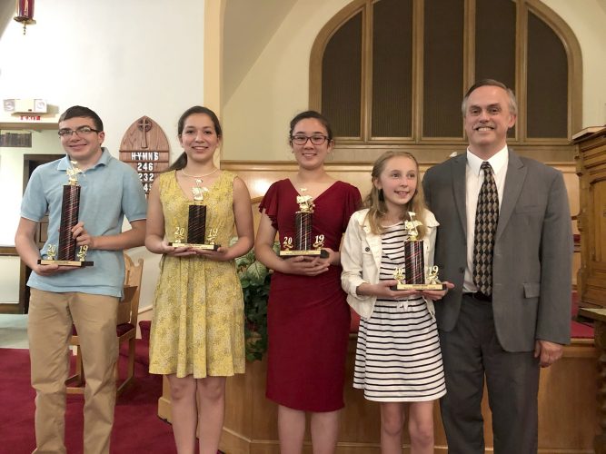 Jackson Fowler, Madeline DeJoy, Amerasia Miller and Annika Hedin, students of area piano teacher Andrew Schmidt, each recently received a distinguished award from the National Guild of Piano Teachers.