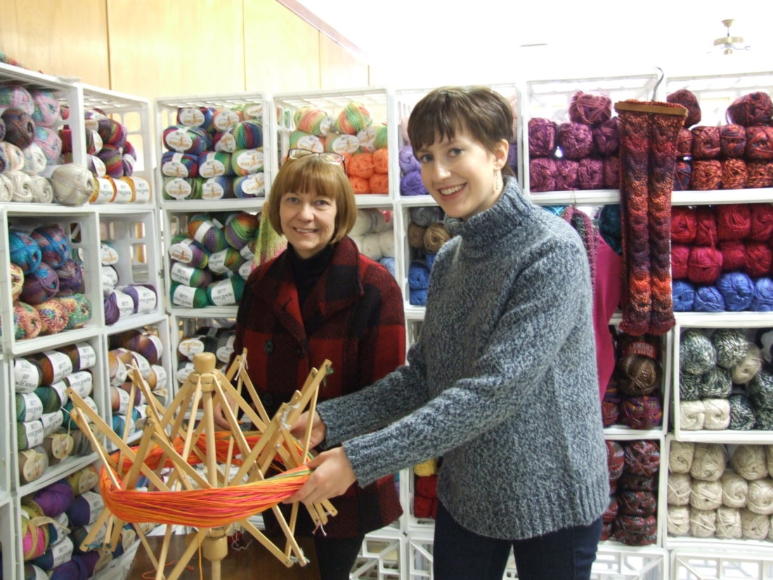 - Yarn For Ewe owners Dianne Valvo (left) and her daughter Mary Heyl (right) use a yarn winder in their Randolph store. Photos by Beverly Kehe-Rowland