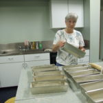 Janet Card and Darcy Kell also man mixing stations, this being Darcy’s first year. Once the loaves are baked, Janet goes in every week to baste with brandy or apple juice. She refers to herself as “the newbie,” even though she has been at the process for seven years.