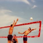 Brennan Robison playing on the pro beach volleyball circuit circa 1995. Photo by Sandy Robison