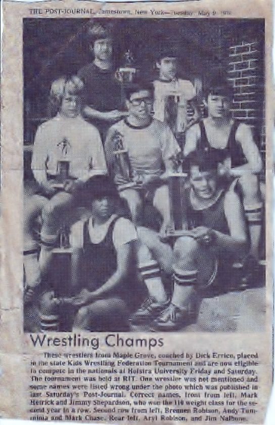 - A Post-Journal photo of New York State wrestling champs. My sons Aryl (top row left) and Brennan (middle row left).