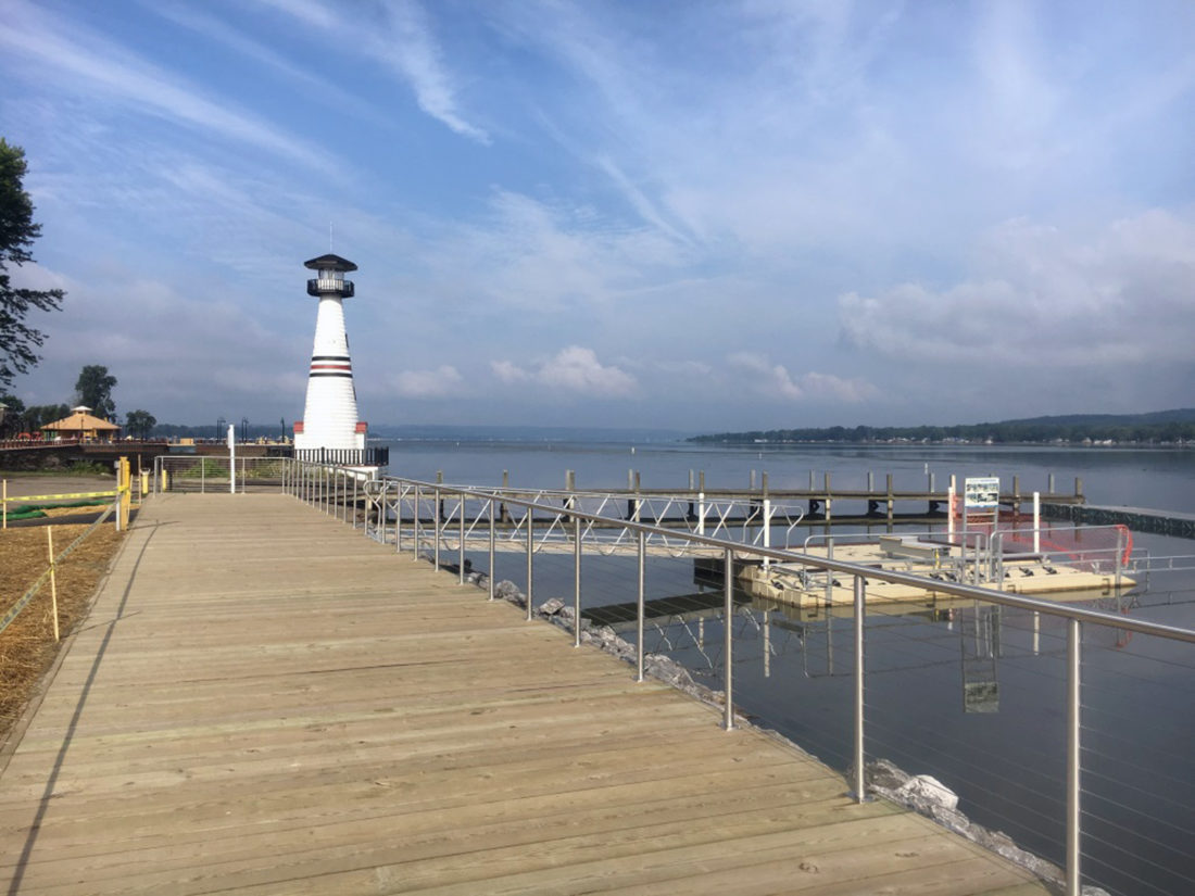 - Recently completed Alliance-partnered shoreline improvement project at the Lucille Ball Memorial Park in Celoron. Project partners included the Village of Celoron, New York State Department of State and Alliance. This Village- and State-funded project implemented a key recommendation of the Village’s Local Waterfront Revitalization Plan by replacing a dilapidated concrete breakwall and constructing a multi-use raised timber boardwalk and handicap-accessible floating kayak launch, among other waterfront improvements. Submitted photos