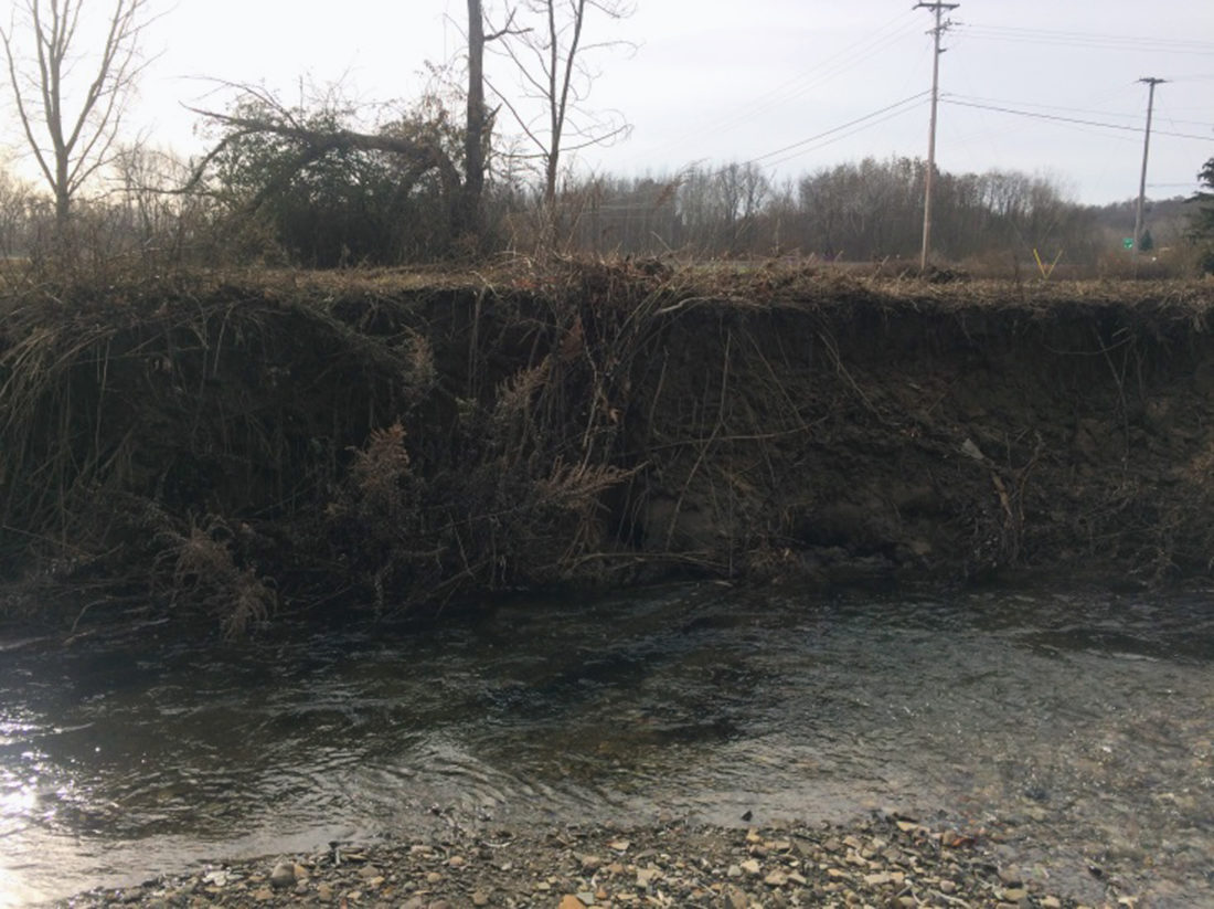 - Recently completed Alliance-partnered streambank stabilization project along Ball Creek in North Harmony. Project partners included the County of Chautauqua, Chautauqua Watershed Conservancy, Chautauqua County Soil & Water Conservation District, New York State Department of Environmental Conservation, and Alliance. A County investment of about $22,000 from the Occupancy Tax Program and reallocated CLMC capital funds leveraged an additional $66,000 in NYS grant funds to complete the project, which included the stabilization of an approximately 250-foot-long section of severely eroded streambank via bank grading, stone toe and slope protection, bendway weirs (to help redirect flow), channel grade control, and native plantings and invasive species management (to further stabilize the bank and filter runoff). The project will help improve stream and riparian habitat and reduce excessive sediment and nutrient loading to Chautauqua Lake, which are key factors contributing to Harmful Algal Blooms, nuisance macrophyte growth and loss of lake depth. Photo Courtesy of Chautauqua Watershed Conservancy