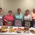 Standing from left to right are Allene Hooper, Shirlea Roman, Sandra Gilebarto, Ruth Walton and Sandy Pryll members of Chautauqua Region Chapter of the Embroiderer’s Guild. Each member displays her embroidered version of a Sudoku puzzle in which stitches were substituted for numbers. Submitted photos