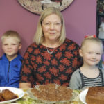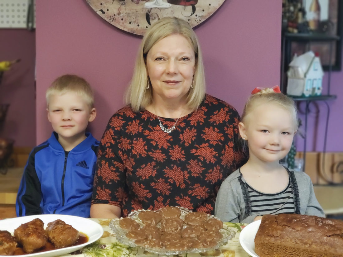 Maverick Milford (left) and Lily Milford (far right) wait patiently to sample Honey-Garlic Slow Cooker Chicken, Cow Pies and Pumpkin Bread their grandmother, Margaret Milford (center) prepared while they were in school. Photos by Beverly Kehe-Rowland