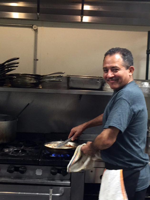 When time allows, he circulates among them while asking for their comments. The hiring of J. J. Galbez, a cook and friend from North Carolina, has freed Flores up a little.