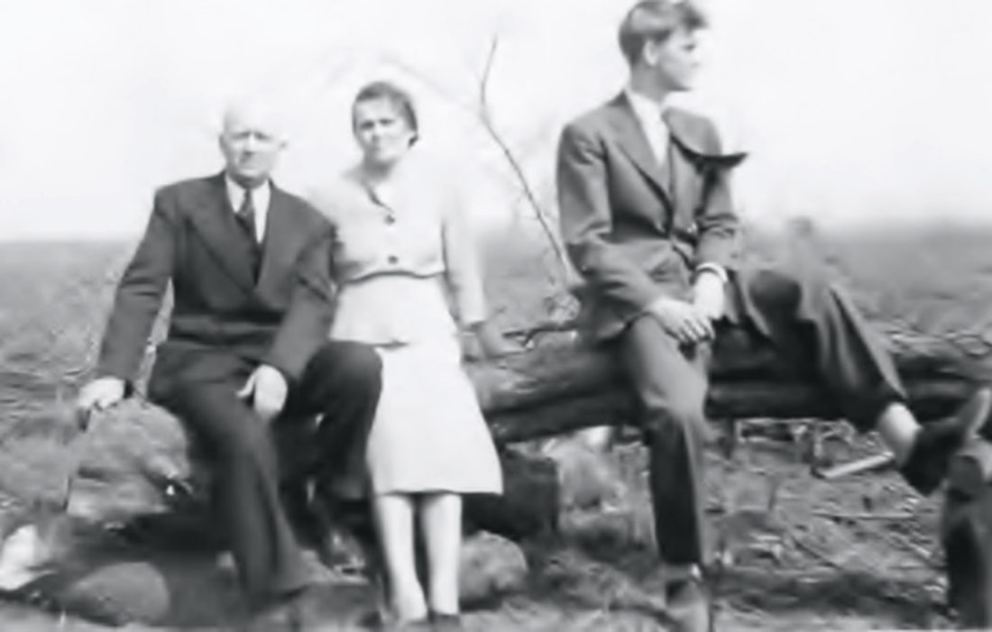 Ben and Martha Johnson, my grandparents, with our dad Raymond. Circa 1940. Sunday drive with a stop at the old farm in North Harmony. Photo from family archives