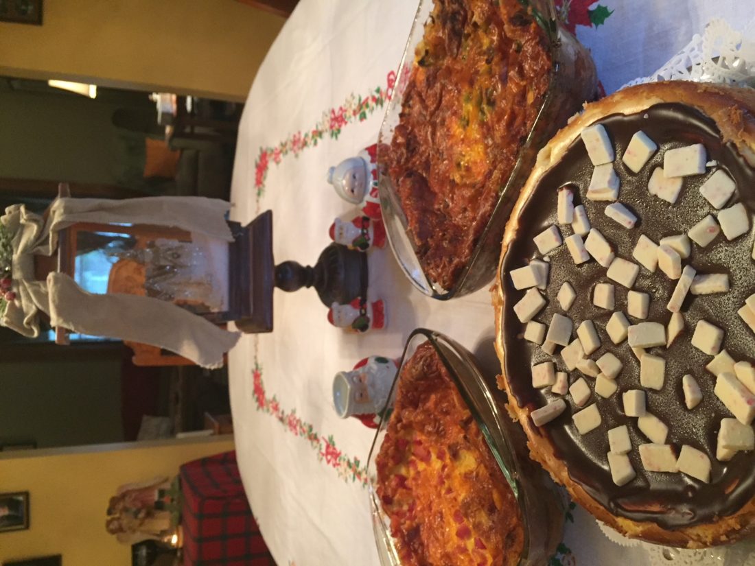 - This scrumptious Peppermint Bark Cheesecake (foreground) makes a festive holiday dessert. The Propheter Family enjoys two varieties of Breakfast Strata (rear) on Christmas morning.