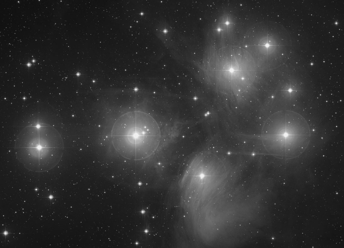 - Below is the famous Pleiades Star Cluster consists of about 3,000 stars. It is located about 400 light-years from Earth in the constellation Taurus and is easily located without any optical aid during the winter months. Courtesy NASA, ESA, AURA, Caltech, Palomar Obs
