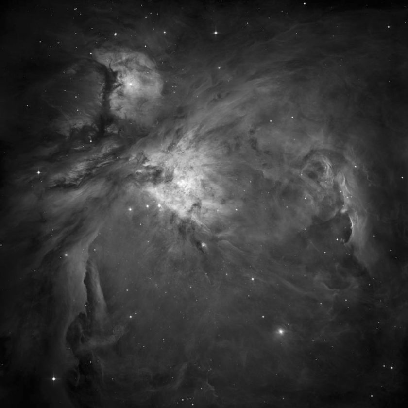 These gigantic and turbulent dust and gas clouds, glowing in the constellation of Orion, are located about 1,400 light-years from our solar system. Incredibly, they can be glimpsed from a dark site without any optical aid on clear December evenings. Add binoculars or a small telescope and the view becomes spectacular. Courtesy NASA, ESA, HST Orion Treasury Project Team