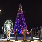 - On the waterfront at the foot of our street was a mammoth ever-changing electronic Christmas tree with various ornament-shapes outlined with lights. The colors changed as various Christmas songs and patriotic tunes played. The tree was situated in front of a row of saluting statues of men in uniform representing the five branches of the U.S. Armed Forces. Photo by Beverly Kehe-Rowland