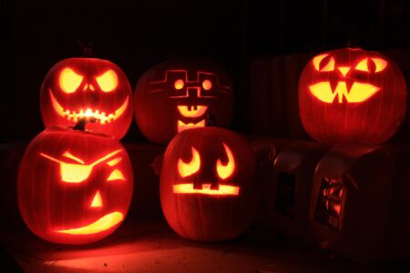 Jack-o-lanterns on a doorstep. Photo by Jesse Palmer