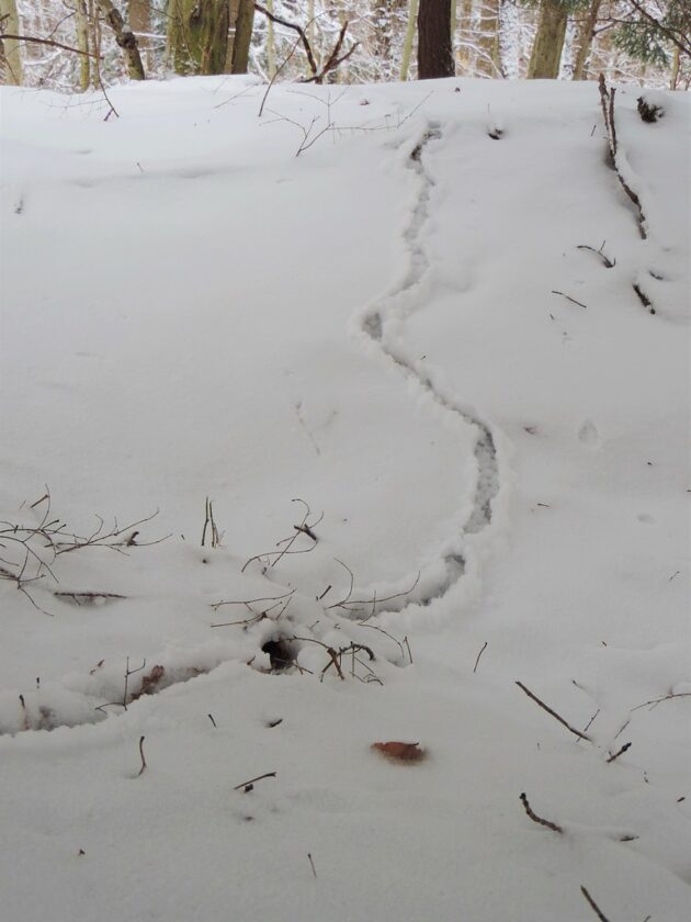 The subnivean zone is not a zone for humans. Our large size and poor senses exclude us from experiencing the area on our own, but traces of the zone remain as the snow melts, giving us a glimpse into this secret area. Spring will, eventually, come and with it, warmer temperatures and the melting of snow. As the snow melts, be on the lookout. Snaky, snowy outlines often appear on the ground as the snowpack melts away. These are the final remnants of the network of tunnels left by the creatures who make the subnivean their home. Sometimes, these tunnels melt with the grass, or dive into holes underground, as the creatures burrowed their way through.