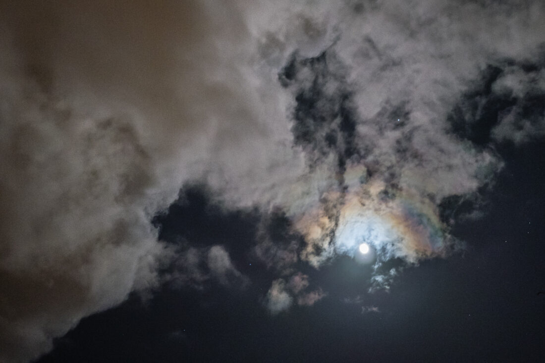 A moonbow photographed as storm clouds roll in. Photo by Jeroen Hermkens