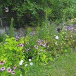 The curved shore straightens out to a river’s genesis. The vast maples, surviving elms, and majestic willows drape the lakeside, and as the land rises, steeply, hickory, lilac and wildflowers festoon it. In July the tiger lilies tall and straight, astonishingly orange, rose against the quaint stone wall of the old mansion along with Queen Anne’s Lace, but they are gone until next year. Now it’s August, and a lilac shade of daisy flanks the wall. Next door, my grandparents’ house sits empty, its flagstone walk out back dotted with shade-loving Lily of the Valley, or so it is in my memory.