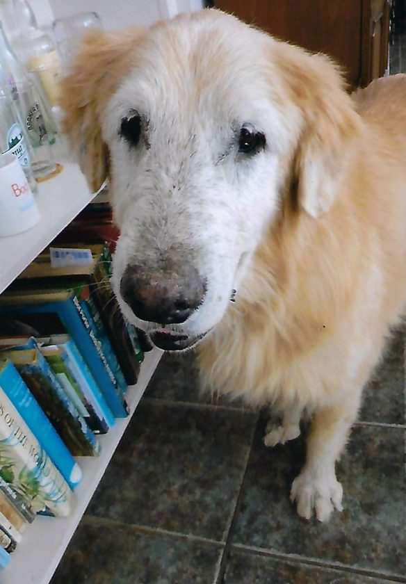 Minor’s had a hard winter — and not just because of the cat. Actually, he tends to try to ignore her (which raises her efforts not to be ignored). Truth is, Minor’s become an old dog. Ten and a half. Not old for all goldens but definitely for one plagued with so many problems.
