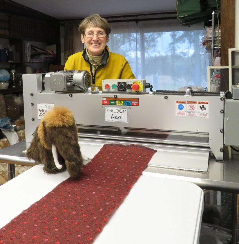 Sue began searching for a solution and found the answer when she was introduced to the FeltLOOM Lexi. The Beans recently purchased one of these looms and it sits in the work area of their Simply Natural Alpaca Gift Shop. Sue has become an authorized dealer for the machine and, as one of six dealers in the whole United States, she is the agent for New York state.