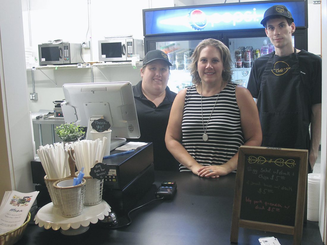 From left, Kara Baase, Due East Cafe employee, Heather Lynn, Lynn Development sales and marketing director, and Andrew Stevenson, Due East Cafe employee, at the new cafe inside the Lynn Building, located at 310 E. Third St. Jamestown. The Due East Cafe is open to the public from 8 a.m. to 4 p.m. and is located on the second floor of the Lynn Building. P-J photo by Dennis Phillips