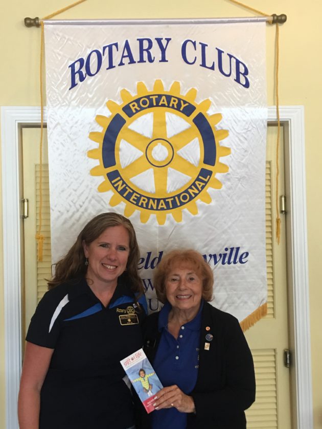 Pat Castiglia, the Rotary Foundation annual fund chair for District 7090 and a member of the Rotary Club of Hamburg, pictured at right, spoke to Westfield-Mayville Rotary Club members on July 25 about “Gift of Life,” an international project which was founded in 1975 by a Rotary Club on Long Island. She was introduced by Westfield-Mayville Rotarian Adele Harrington, pictured at left. The mission of the “Gift of Life” is to provide lifesaving heart surgeries for children. Since it began, this project has provided treatment for over 17,000 children in 67 countries.