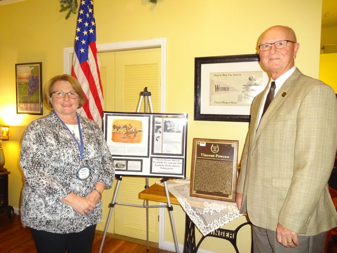 County sports, honors, an exhibit hall and a famous horse jockey named Vincent Powers who was born in Westfield were some of the topics of a program given by Randy Anderson, board member of the Chautauqua Sports Hall of Fame, at the Nov. 7 Rotary Club of Westfield-Mayville meeting. The gathering was held at The Parkview in Westfield. Mary Swanson, Club President Elect, scheduled Anderson’s presentation.