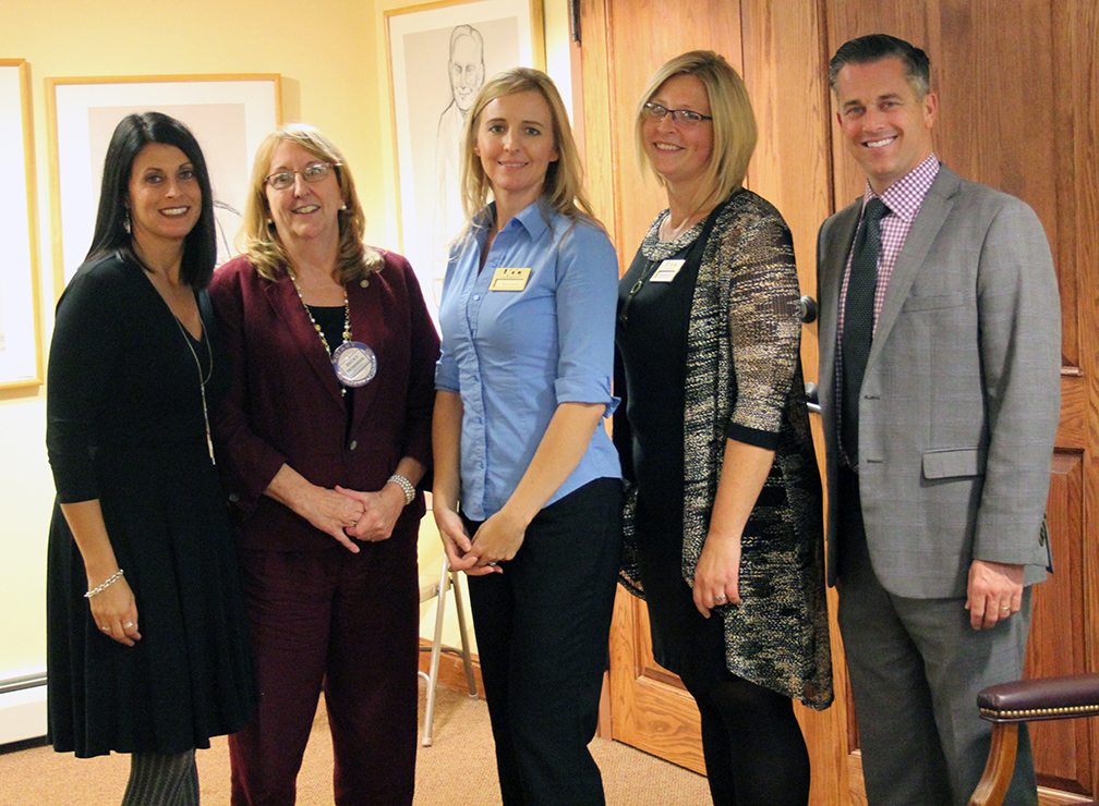 From left are Joelle Washer, Jamestown Noon Rotary Club president; Becky Robbins, Sarah Tranum, Beth Starks and Dr. Kirk Young.
