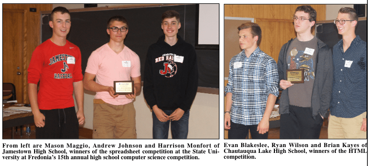 High school computer science students from Chautauqua Lake, Fredonia, Gowanda, Jamestown and Eden recently competed in the 15th annual computer science competition sponsored by the Department of Computer and Information Sciences at the State University at Fredonia.