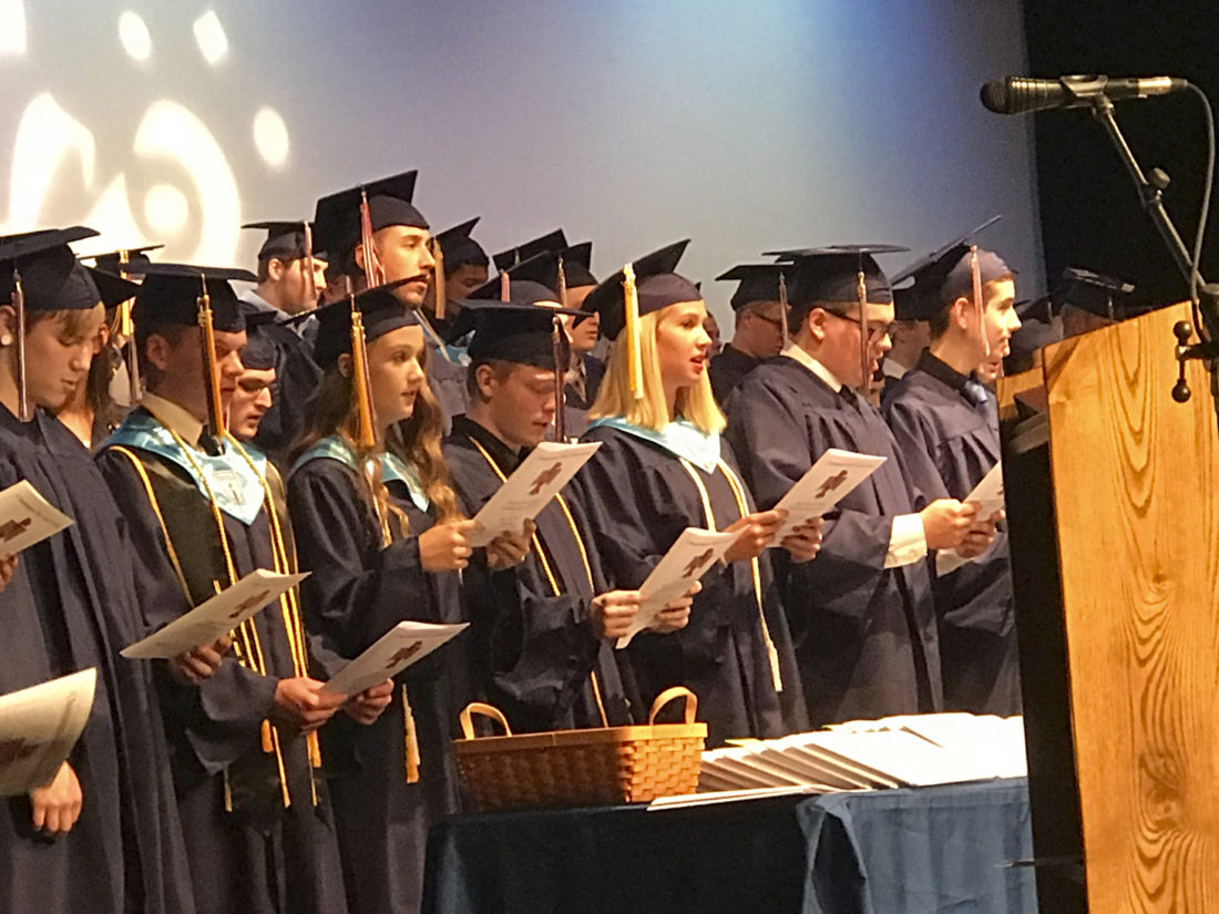 To start off the 22nd annual commencement ceremonies, Jennifer Davis and Wendy Marlinski led the entire auditorium in the singing of “America the Beautiful” and the Chautauqua Lake Alma Mater. At the conclusion of the opening chorale, Secondary School Principal and Director of Athletics Joshua Liddell gave the opening remarks.
