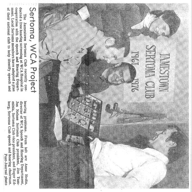 Because of Sertoma’s mission to work with individuals at risk for speech and hearing issues, local members began volunteering at WCA Hospital under the direction of Director of Speech and Hearing, Dr. Robert Piede. “There was no charge for (speech and hearing tests),” Raffa explained. “Club members volunteered their time and helped people of all ages complete their testing.”