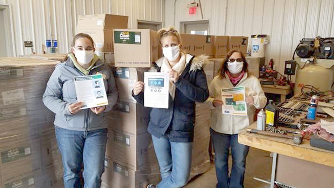 From left, Emily Reynolds, Cornell Cooperative Extension executive director; Jennifer Russo, Cornell Lake Erie Regional Grape team leader; and Madonna Martin, field assistant, show supplies to stay safe from COVID-19 available to farmers, free of charge.