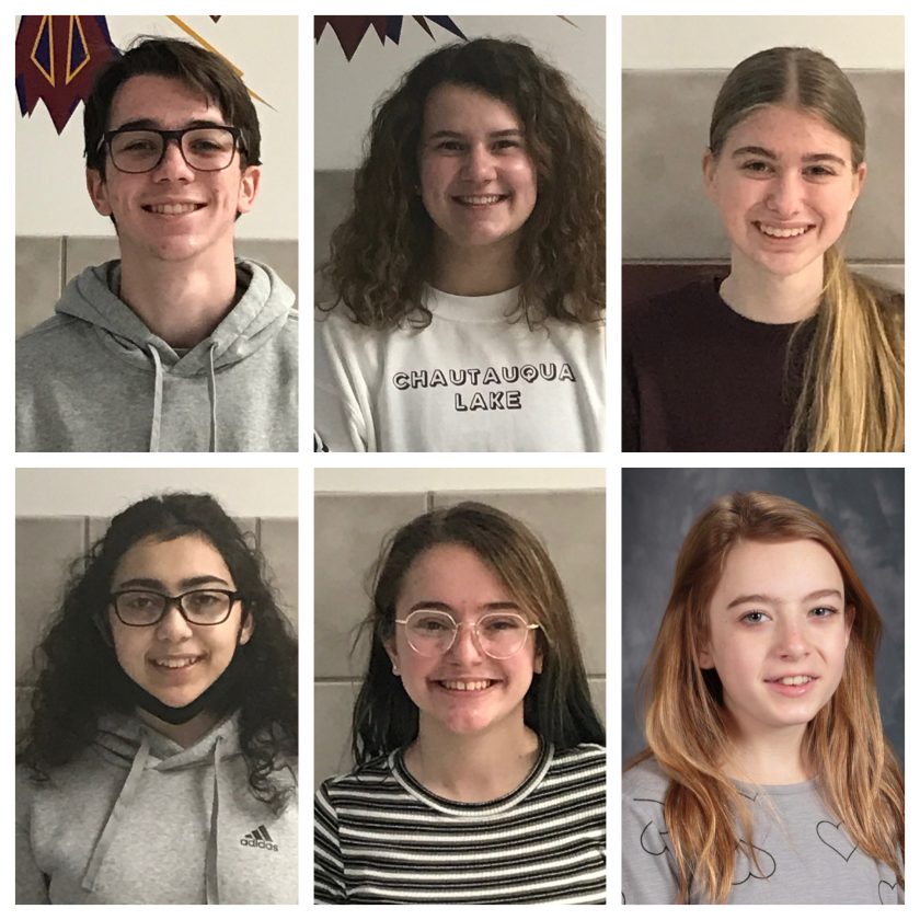 Students of the Month at Chautauqua Lake Central School, honored for February achievements, are Jackson Janicki, Lily Woodis, Alexandra Reyda, Tala Abuhmeidan, Olivia Shearer, and Lillian Schenk.