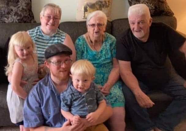 Viola Gimlin Gertsch of West Ellicott recently gathered for a five-generation picture. Pictured are, in back from left, are Tonya Lefebvre Haight (granddaughter), Gertsch and William Gertsch (son). In front are Tyler Haight (great-grandson) with his children, Ellionna and Oliver Haight.