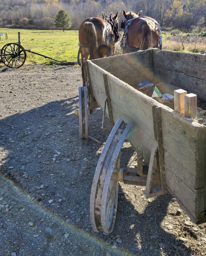 No injuries, including to horses, were reported in a crash involving a buggy and pickup truck Monday afternoon. Volunteer firefighters were alerted to the collision after 2 p.m. Chautauqua County EMS and New York state troopers also responded. Photo by the New York State Police