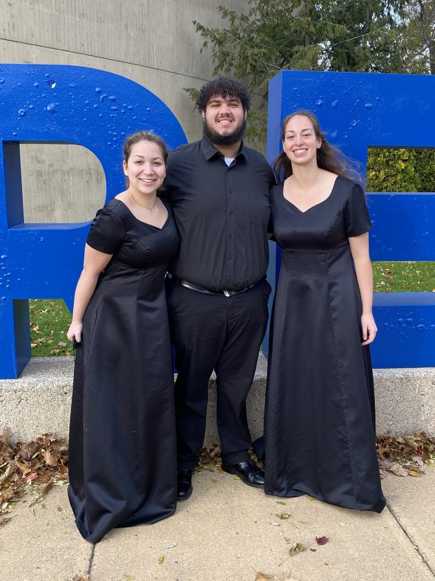 From left are Madeline DeJoy, Horn, Concert Band; Donovan Gomez, Tenor 1, Mixed Chorus; and Meghan Mistretta, Euphonium, Concert Band. Not Pictured is Bradley Galeazzo, Bass 1, Mixed Chorus Alternate.
