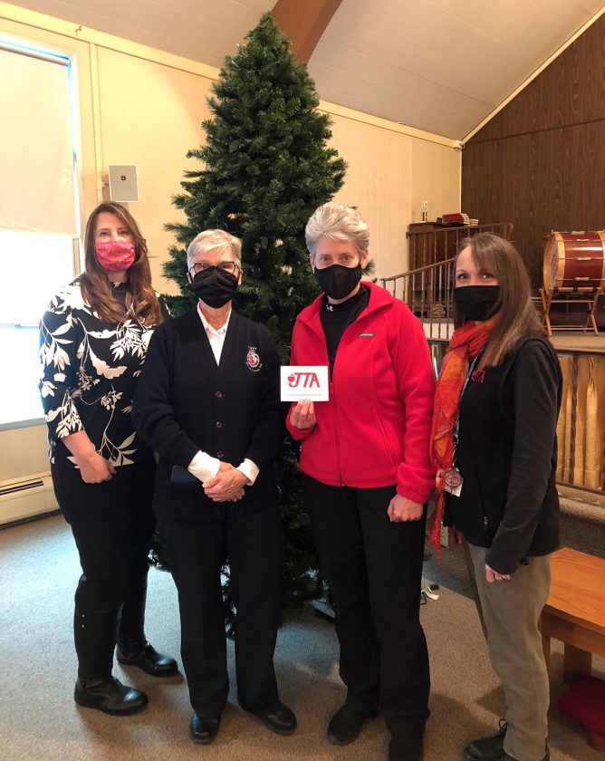 Pictured are Diana Butcher, program director of the Salvation Army Anew Center, Major Kim Merchant from the Salvation Army, Jamestown Teachers Association President Stephanie Sardi and Stephanie Baker, JTA Local Action Project chairperson.