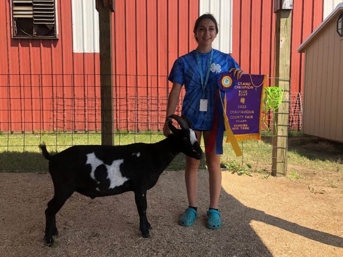 Chautauqua County Fair was a maze of excitement as Cornell Cooperative Extension of Chautauqua County’s 4-H members prepare, care for, and show their animals. Show results for 4-H exhibitors continues the excitement. 4-H Goat Program participants performed in the Small Animal Arena in the Dairy Goat and Meat Goat Shows. Youth were judged by Derek Poole of Sodus, NY, who evaluated youth in Showmanship Classes based on how well each youth and goat performed together. Youth in the Goat Show also participated in Dairy and Market Classes in which animals were judged on respective breed standards and in Market Classes on finish and projected carcass quality. Market Goat participants sold their animals at the 4-H Meat Animal Sale on July 22.