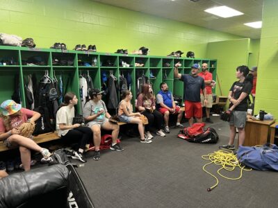 The group brought in many special guests during the summer including Stephen Carlson, professional NFL player, Conner Grey who plays in minor league baseball in Syracuse and was recently called up to the New York Mets, Alex Mulholland and Chris Mulholland who are professional lacrosse players, and the Jamestown Jackals. The students took field trips to visit the Tarp Skunks and Northwest Arena to see both the business side of running a stadium, as well as the athletic side.