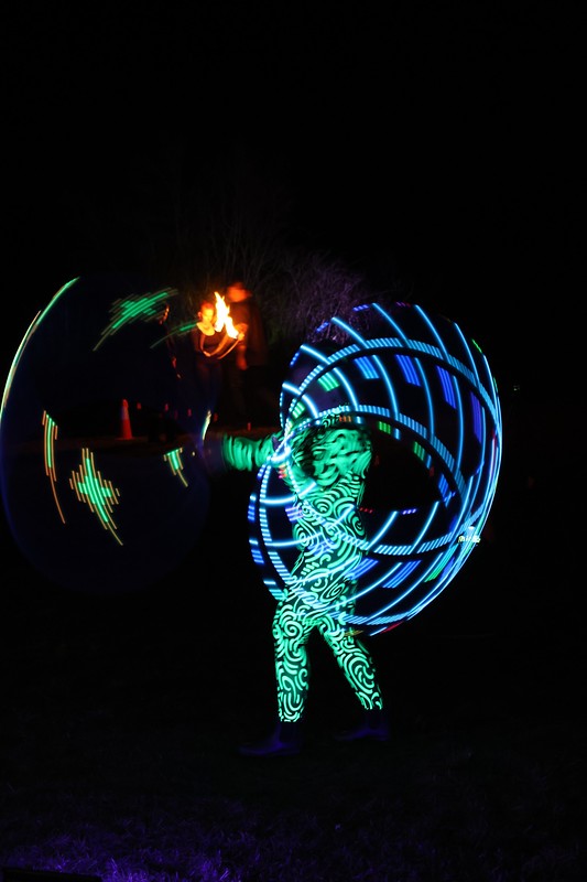 LED Dancing by Bex, a mix of hula hooping and other forms of LED entertainment, will be part of Audubon Community Nature Center’s Audubon Lights Pop-up on Thursday, April 6. This addition to the final weekend of Audubon Lights will feature all the spectacle of the previous nights – with perfect weather predicted. Photo of Brandy Welch by Mark Evans
