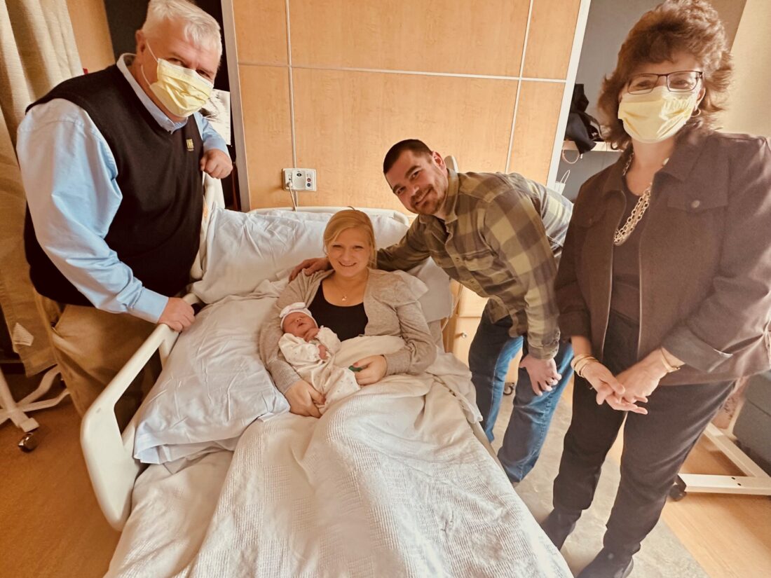 Celebrating the birth of their daughter and the endowment gift to the hospital, Shawn and Megan Whitmer recently welcomed daughter, Bree, at 6 pounds, 14 ounces. The Whitmers said they look forward to bringing Bree home and introducing her to family, and to one special family member, their dog, Abby.