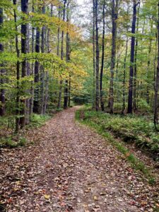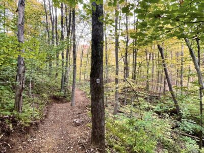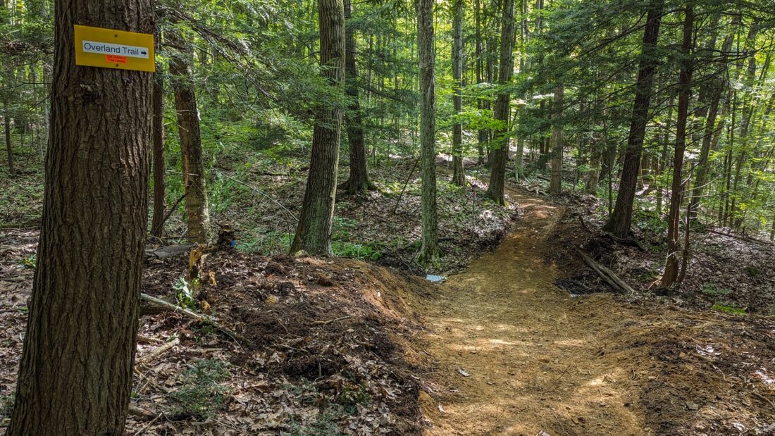 The recent upgrades to the Overland Trail add switchbacks to eliminate the “fall line” sections and bench-cuts for sustainability and efficient drainage. The trail is far easier to navigate and provides trail users with stunning views of ravines and streams in Harris Hill State Forest.
