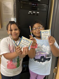 Ring School students Kyahrae and Gianna Sharp show off their prizes for “beating the bell” at Ring School.