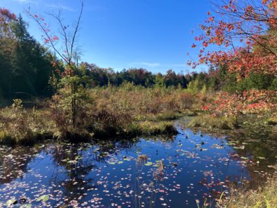 Like the neighboring College Lodge Forest, the Floating Fen is situated directly in a migratory bird corridor. That means birds as diverse as Veeries, Blackburnian Warblers, Yellow-billed Cuckoos, and Scarlet Tanagers may all descend on the forest to nest in the spring. This creates a vivid atmosphere for birding–and a truly unique opportunity for birders and hikers alike to experience this beautiful property.