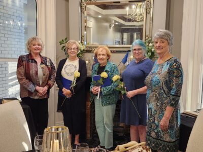 Barbara Pietro, registrar, reports the group has four new members. Sandra Haskin, Shannon McRae, and Marilyn Desnerck were inducted by ceremony by Myra Johnston, regent, and Deborah Cenni, chaplin. Darcel McLane will be inducted later as she is out of state at this time.